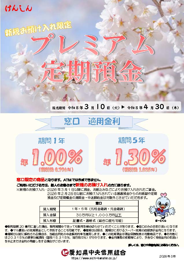 新規お預け入れ限定「プレミアム定期預金」のご案内